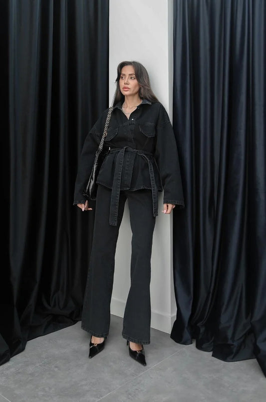 Description détaillée Haut : manches longues, col multicouche, boutons cachés, poches latérales, ceinture intégrée Bas...