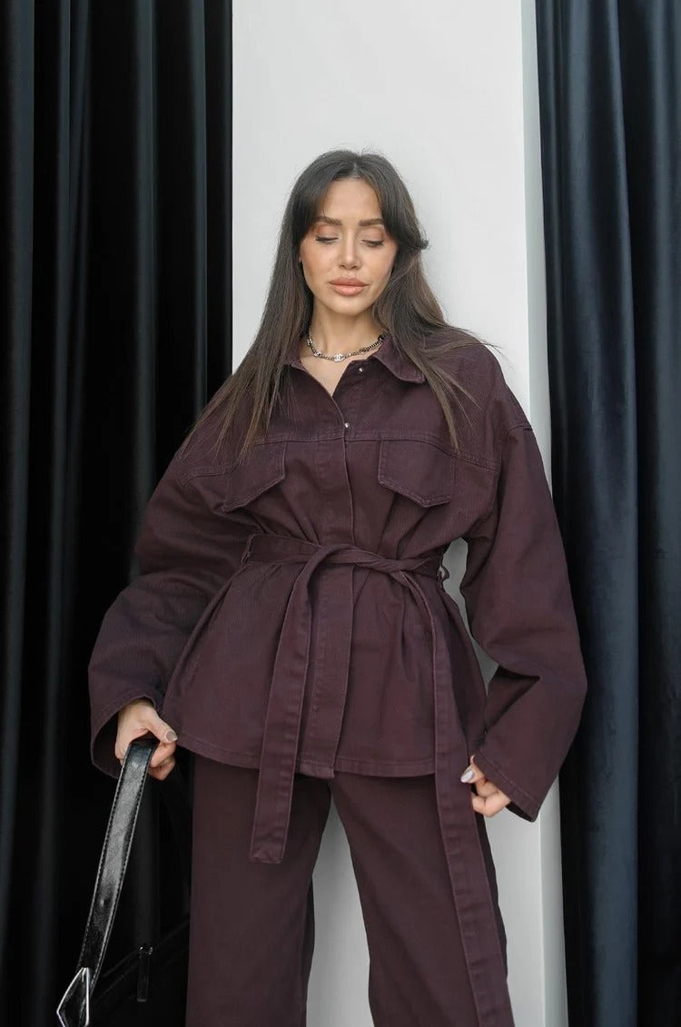 • Haut : manches longues, col multicouche, boutons cachés, poches latérales, ceinture intégrée